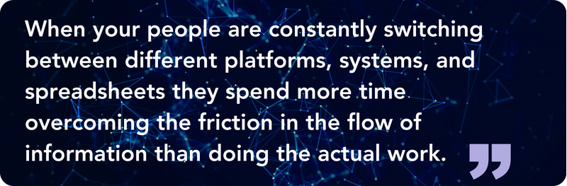 In his capacity as an outsourced Chief Information Officer (CIO), Francois Kriel, Client Success Principal at Cyberlogic, often finds that this ‘patchwork quilt’ of different systems and platforms is the norm when he first enters a business. The result is a clunky technology interface, creating a poor (and costly) user experience. When your people are constantly switching between different platforms, systems, and spreadsheets they spend more time overcoming the friction in the flow of information than doing the actual work. Technology should be the bridge between people and process, but if that bridge is flawed, people will seek other bridges — or worse, build their own — as a way around it. And so, another spreadsheet is born.